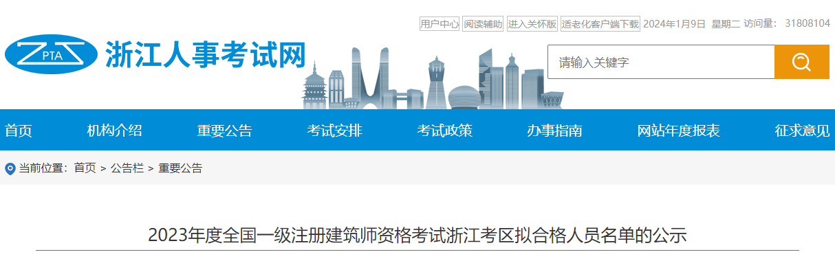 根據(jù)《關(guān)于 2023 年度全國一、二級(jí)注冊(cè)建筑師資格考試有關(guān)工作的通知》(浙設(shè)執(zhí)委〔2023〕1 號(hào))文件規(guī)定,現(xiàn)將2023年度全國一級(jí)注冊(cè)建筑師資格考試浙江考區(qū)擬合格人員名單(未含不使用告知承諾制的合格人員)予以公示,公示時(shí)間10個(gè)工作日(2024年1月8日至2024年1月19日止)。