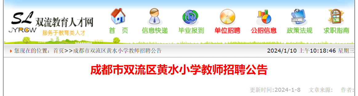 2024四川成都市雙流區(qū)黃水小學(xué)教師招聘公告已發(fā)布,報名時間:2024年1月15日前?,F(xiàn)將招聘公告原文發(fā)布如下: