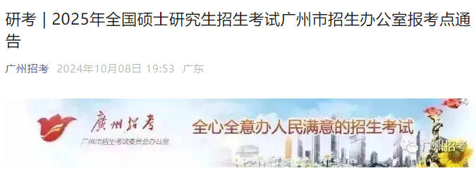 根據(jù)教育部和廣東省招生委員會辦公室有關(guān)工作安排,2025年全國碩士研究生招生考試網(wǎng)上報名工作即將開始,結(jié)合本報考點(diǎn)實(shí)際(廣州市招生考試委員會辦公室報考點(diǎn)代碼:4401),現(xiàn)將有關(guān)事項(xiàng)通告如下:
