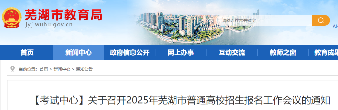2025年普通高校招生工作即將開始,經(jīng)研究,決定于2024年10月10日下午3:00召開蕪湖市2025年普通高校招生報(bào)名工作會議。