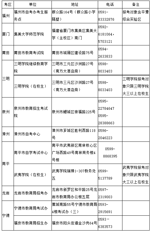 福建省各考區(qū)中小學(xué)教師資格筆試審核點(diǎn)