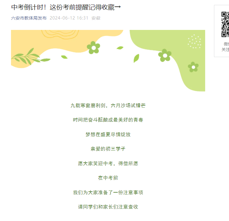 從六安市教體局獲悉,2024年安徽六安中考時(shí)間6月14日-17日,六安市教育體育局考前提醒已公布,具體詳情如下: