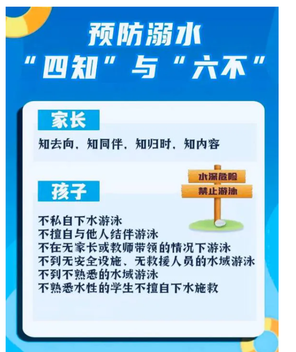 (4)尤其要教育孩子在發(fā)現(xiàn)同伴溺水時(shí)應(yīng)立即呼救,不宜盲目下水營(yíng)救,避免發(fā)生更多傷亡。教育孩子不要到水塘、河邊、水溝、水渠、稻蝦田等有水的地方玩耍或釣魚(yú)(捕魚(yú)),以防不測(cè),造成傷害。