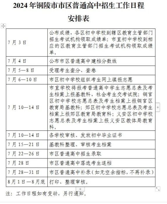 從銅陵市教育和體育局發(fā)布的《銅陵市2024年普通高中招生工作通知》得知,2024年安徽銅陵中考成績(jī)查詢時(shí)間及入口已公布,7月3日公布成績(jī),具體詳情如下: