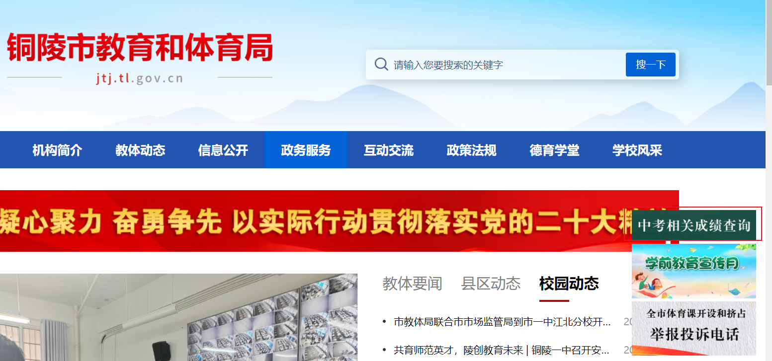 考生可登錄銅陵市教育和體育局(https://jtj.tl.gov.cn/)自行查分或者用皖事通進(jìn)行成績(jī)查詢。