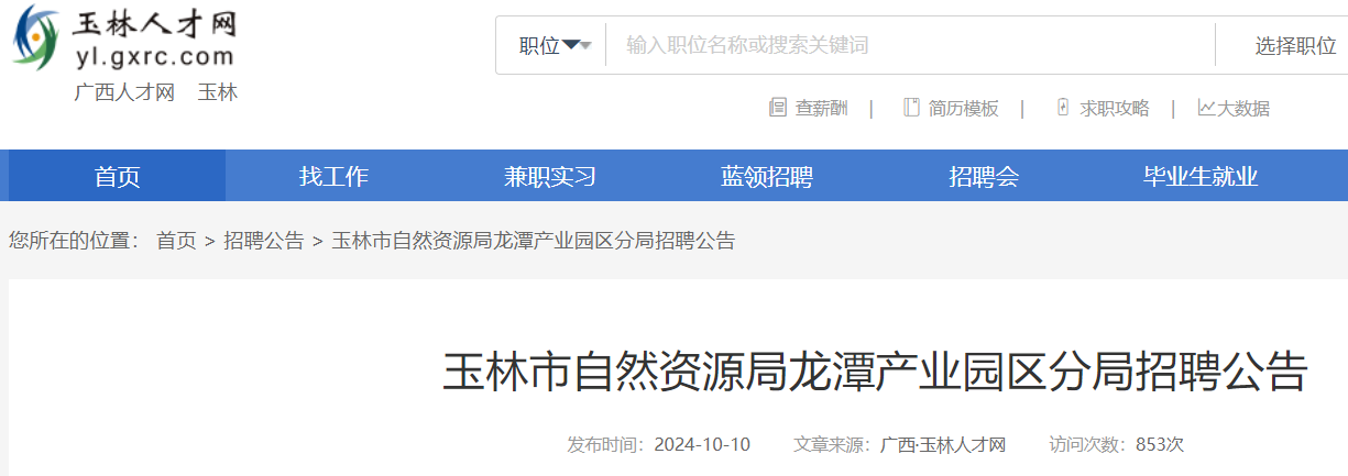 小編根據(jù)廣西人才網(wǎng)發(fā)布“玉林市自然資源局龍?zhí)懂a(chǎn)業(yè)園區(qū)分局招聘公告”得知,2024廣西玉林市自然資源局龍?zhí)懂a(chǎn)業(yè)園區(qū)分局招聘2人,報(bào)名時(shí)間為2024年10月10日-12月09日。