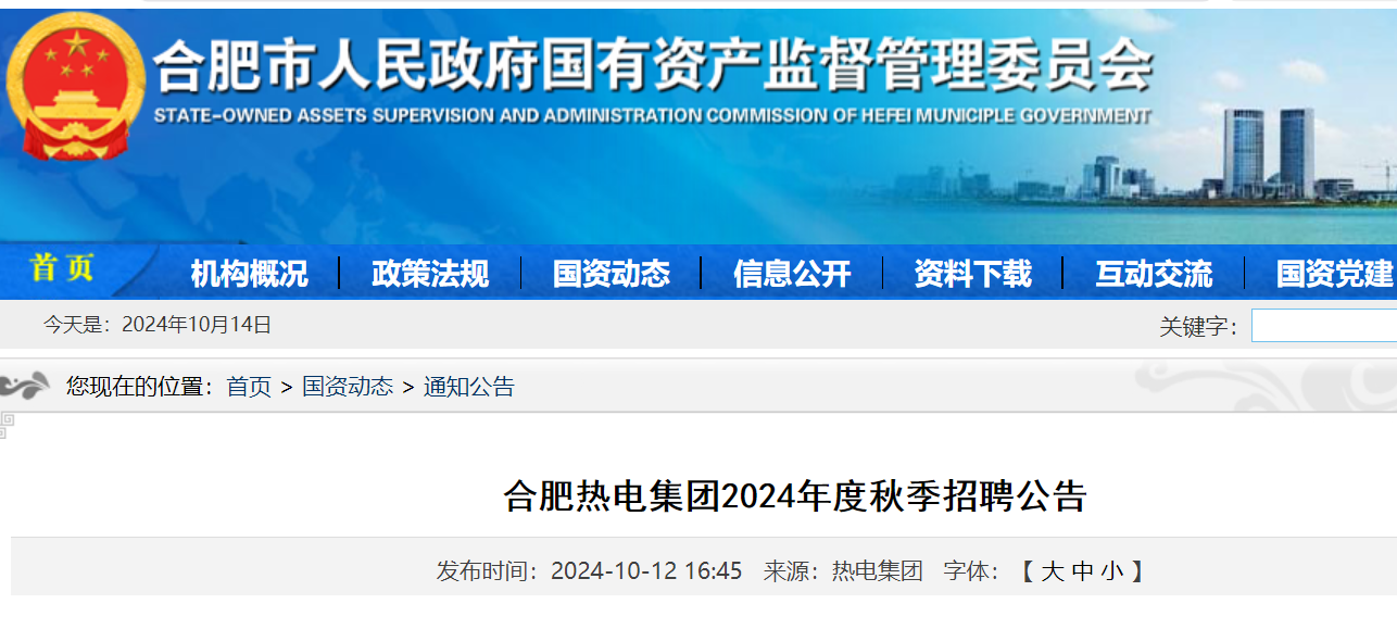 通過合肥市國(guó)資委網(wǎng)站、合肥熱電集團(tuán)網(wǎng)站、公眾號(hào)等發(fā)布招聘公告信息,報(bào)名時(shí)間為在公告發(fā)布之日起至2024年10月22日(周二)17:00截止。