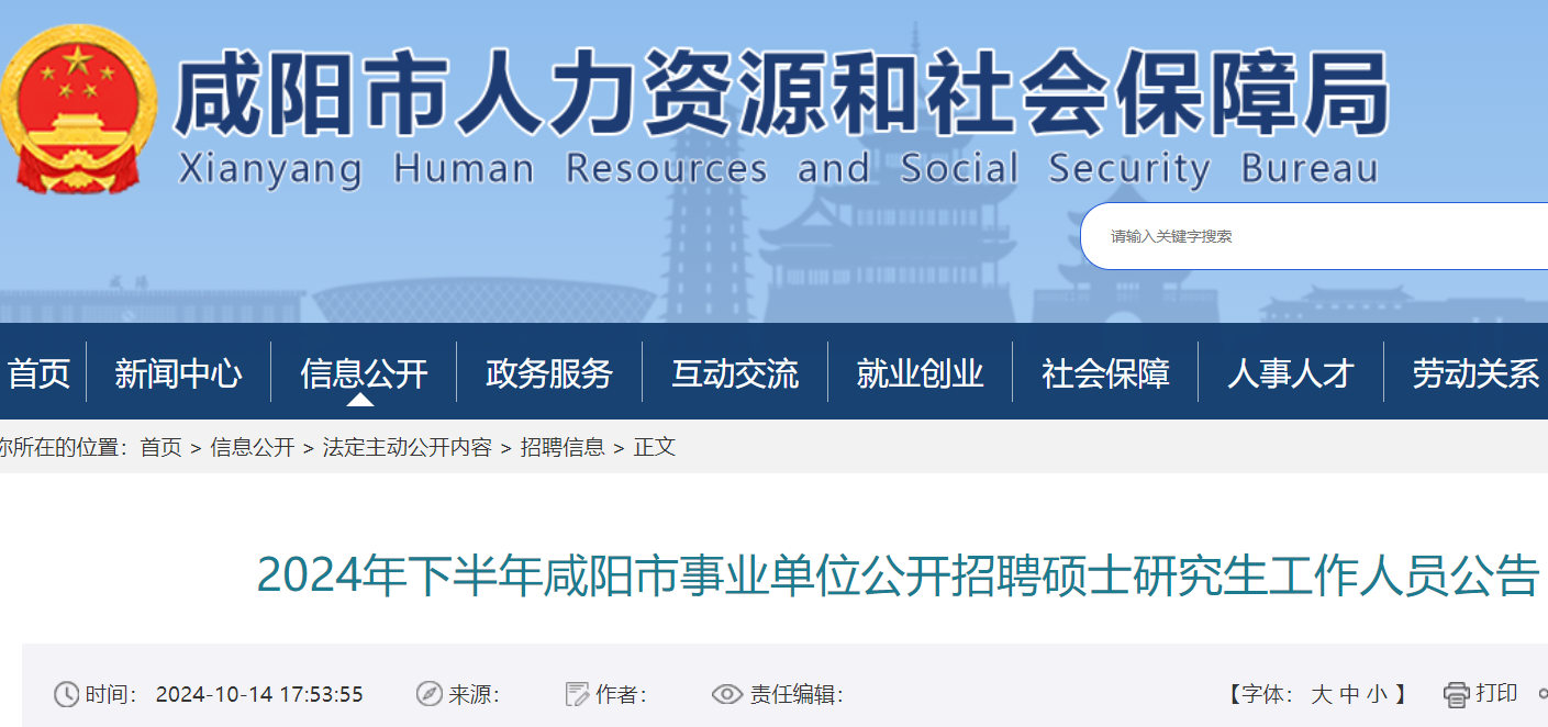 小編根據(jù)咸陽市人力資源和社會保障局發(fā)布”2024年下半年咸陽市事業(yè)單位公開招聘碩士研究生工作人員公告“得知,2024下半年陜西咸陽市事業(yè)單位招聘52人,報名時間2024年10月21日08:00至10月25日18:00。