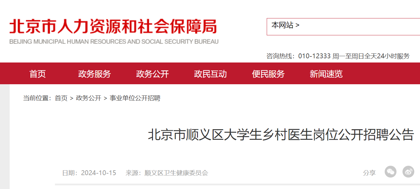 2024年北京市順義區(qū)大學(xué)生鄉(xiāng)村醫(yī)生崗位公開招聘公告已發(fā)布,報名時間:2024年10月21日至10月25日(上午9:00-11:00,下午14:00-16:00)?,F(xiàn)將招聘公告原文發(fā)布如下: