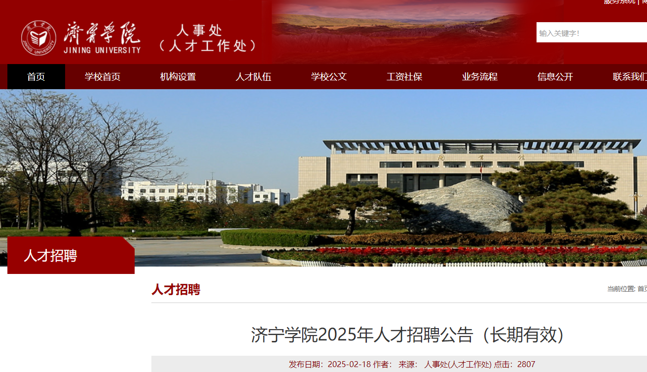 2025年山東濟寧學院人才招聘公告(長期有效)已發(fā)布,通訊地址:山東省曲阜市杏壇路1號濟寧學院人事處(人才工作處)。現(xiàn)將招聘公告原文發(fā)布如下: