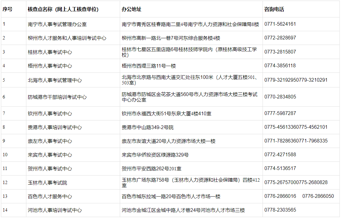 全區(qū)人事考試組織機(jī)構(gòu)(核查點)地址及聯(lián)系方式如下: