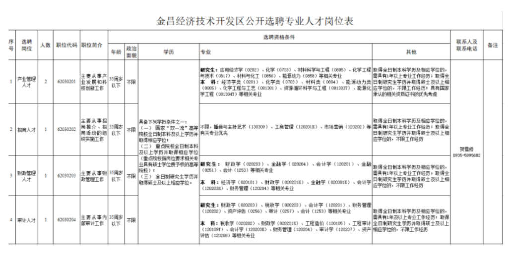 金昌經濟技術開發(fā)區(qū)公開選聘專業(yè)人才崗位表.xls
