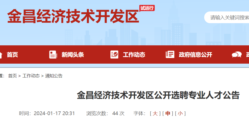 小編根據金昌經濟技術開發(fā)區(qū)發(fā)布“金昌經濟技術開發(fā)區(qū)公開選聘專業(yè)人才公告”得知,2024年甘肅金昌經濟技術開發(fā)區(qū)選聘專業(yè)人才5名。