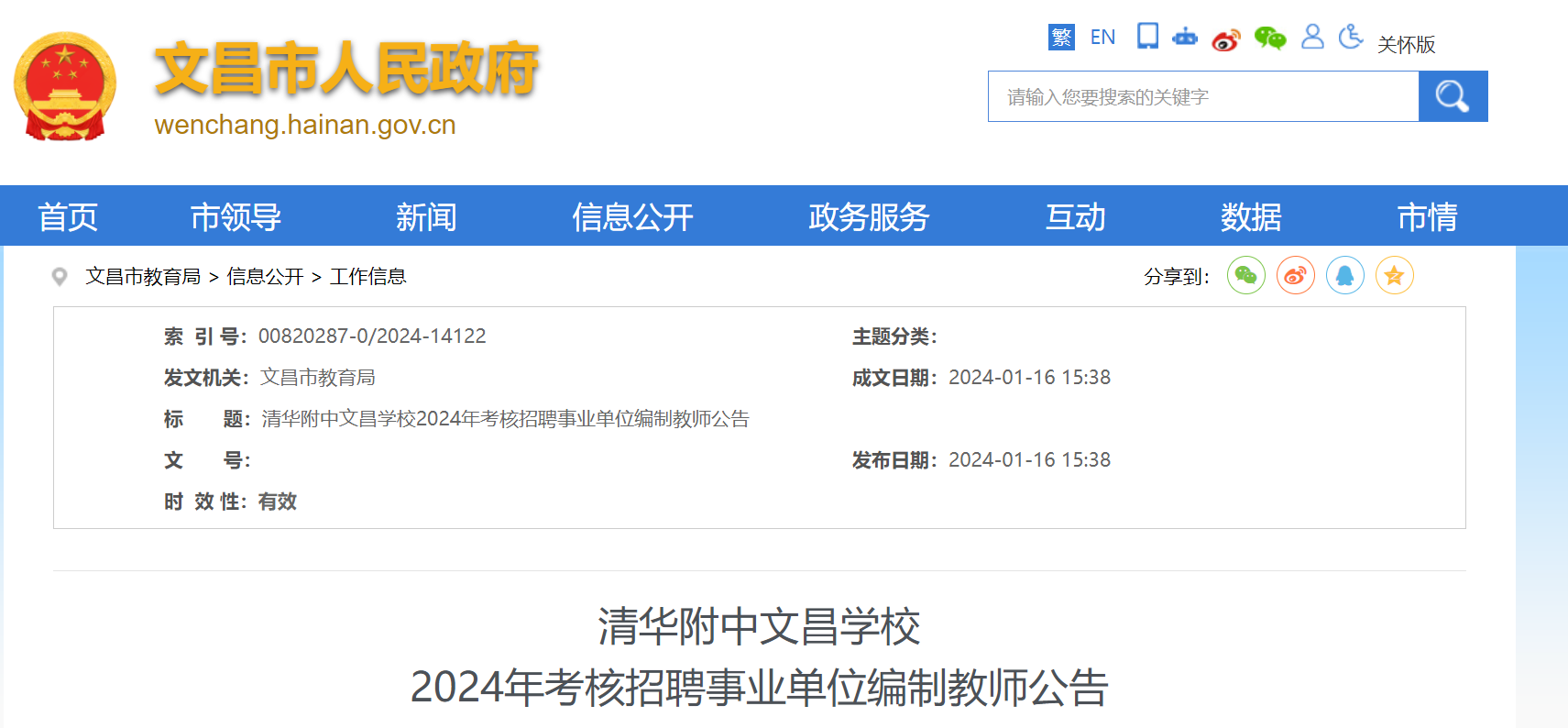 2024年海南清華附中文昌學??己苏衅甘聵I(yè)單位編制教師22人,報名時間:自本招聘公告發(fā)布之日起至2024年1月24日24:00?,F(xiàn)將招聘公告原文發(fā)布如下: