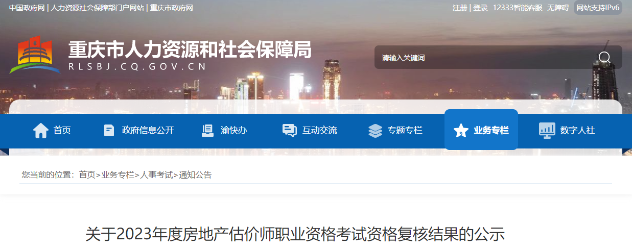從重慶市人力資源和社會(huì)保障局了解到,2023年重慶房地產(chǎn)估價(jià)師職業(yè)資格考試資格復(fù)核結(jié)果公示時(shí)間:1月10日-23日,相關(guān)事宜詳情如下: