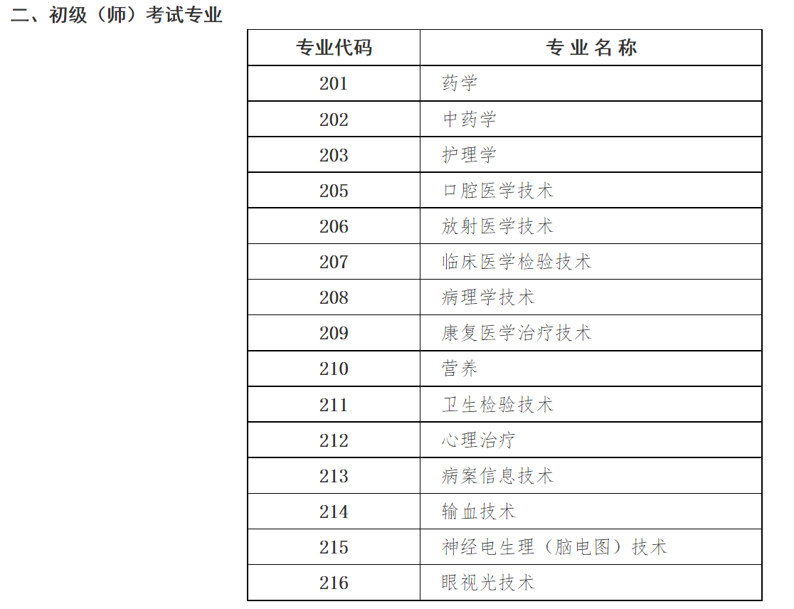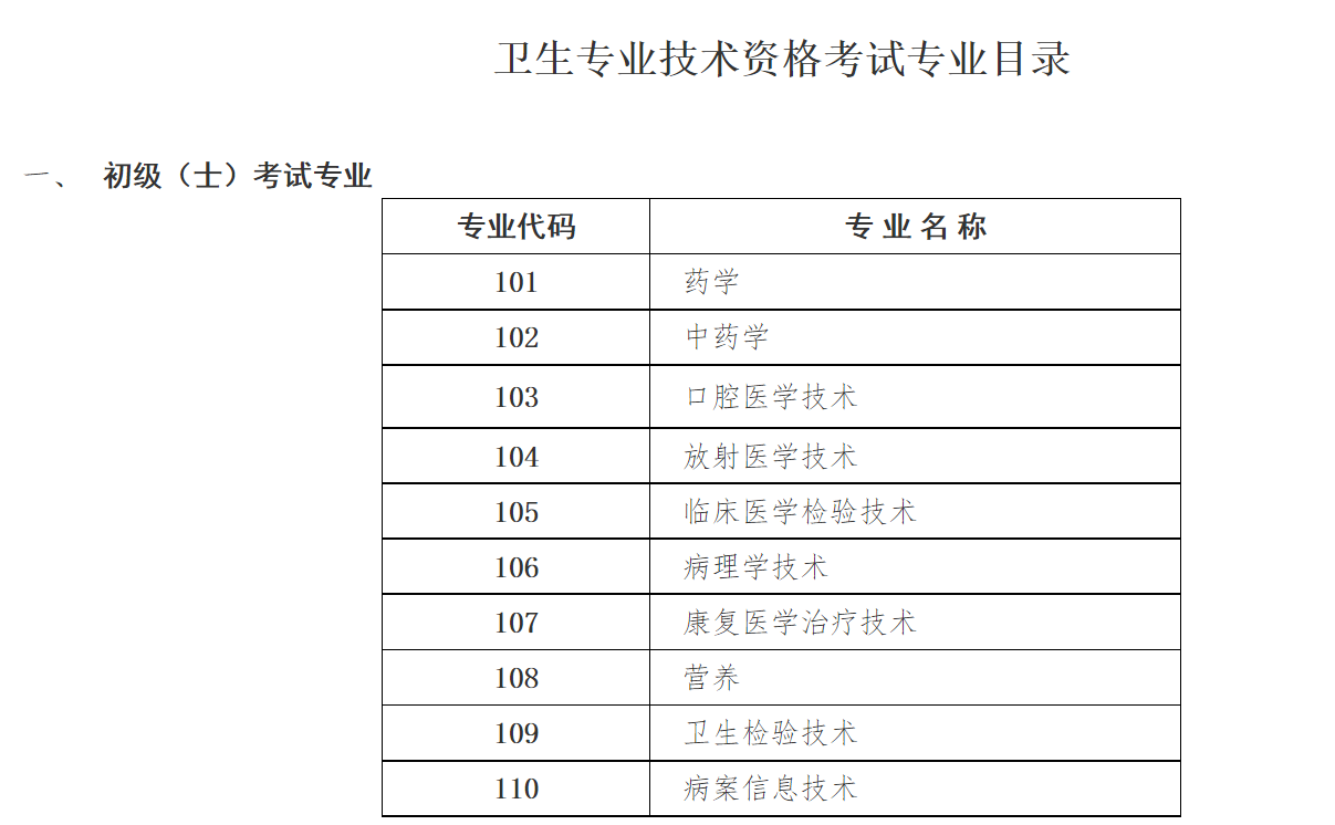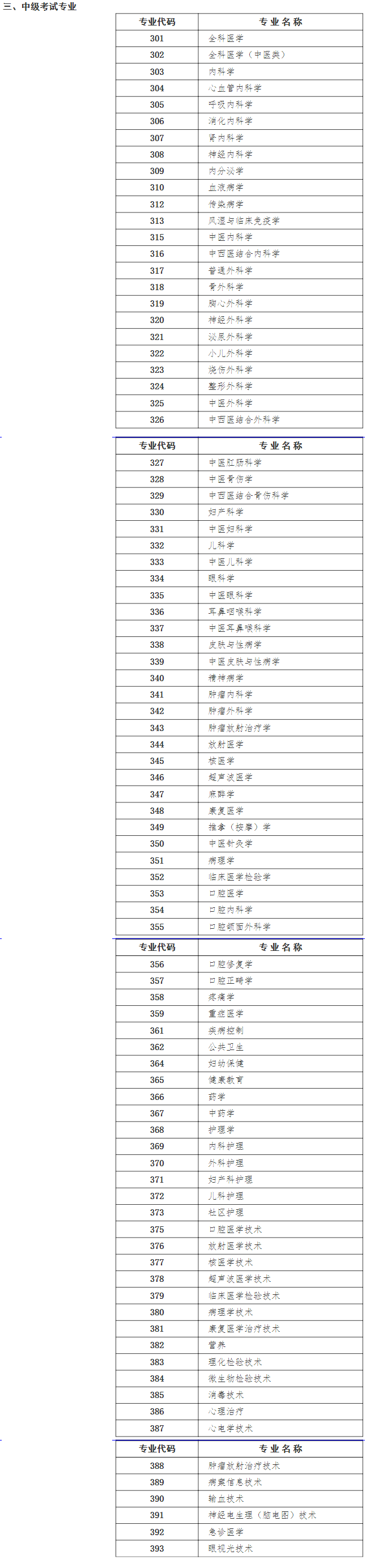 3、衛(wèi)生專業(yè)技術(shù)資格考試專業(yè)目錄: