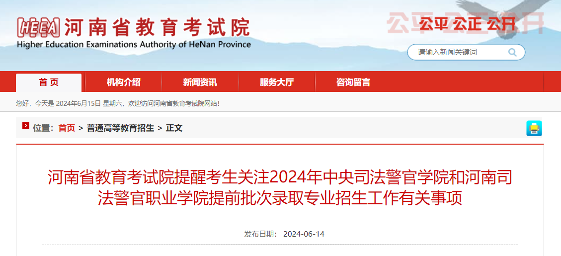 從河南省教育考試院獲悉,2024年中央司法警官學(xué)院和河南司法警官職業(yè)學(xué)院提前批次錄取專業(yè)招生工作有關(guān)事項已公布,具體詳情如下: