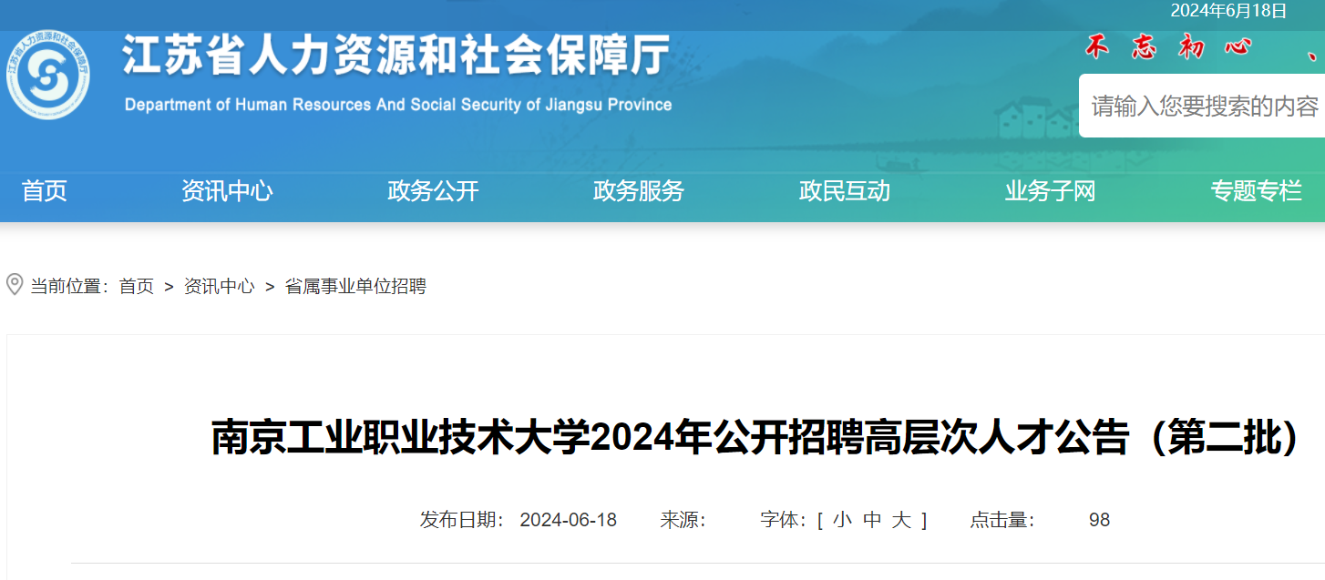 2024年江蘇南京工業(yè)職業(yè)技術(shù)大學(xué)公開招聘高層次人才公告(第二批)已發(fā)布,報(bào)名時間:2024年6月21日09:00-11月28日16:00?,F(xiàn)將招聘公告原文發(fā)布如下:
