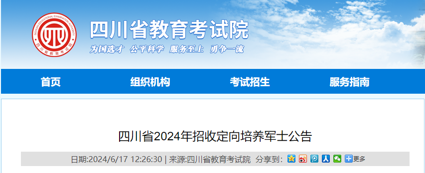 從四川省教育考試院了解到,2024年四川省招收定向培養(yǎng)軍士公告公布,相關(guān)事宜詳情如下: