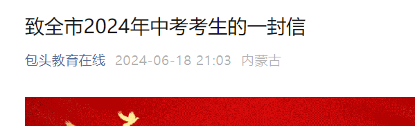 小編根據(jù)包頭教育在線發(fā)布”致全市2024年中考考生的一封信“得知,2024年內(nèi)蒙古包頭中考時(shí)間為6月25-28日,考前準(zhǔn)備內(nèi)容如下: