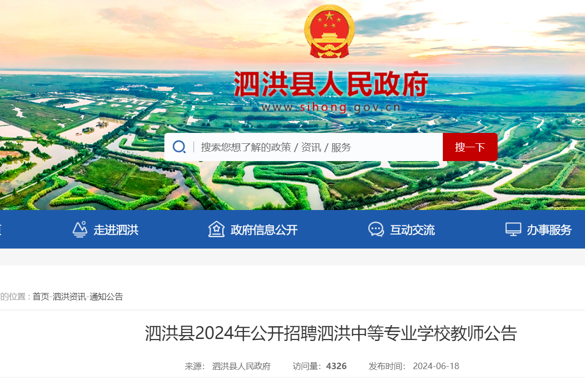 2024年江蘇宿遷泗洪縣公開(kāi)招聘泗洪中等專(zhuān)業(yè)學(xué)校教師公告已發(fā)布,報(bào)名時(shí)間:2024年6月24日9:00—6月27日12:00?,F(xiàn)將招聘公告原文發(fā)布如下: