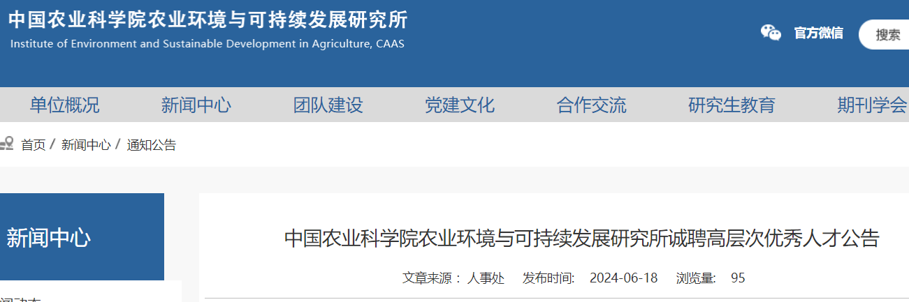 小編根據(jù)中國農(nóng)業(yè)科學(xué)院發(fā)布”中國農(nóng)業(yè)科學(xué)院農(nóng)業(yè)環(huán)境與可持續(xù)發(fā)展研究所誠聘高層次優(yōu)秀人才公告“得知,2024中國農(nóng)業(yè)科學(xué)院農(nóng)業(yè)環(huán)境與可持續(xù)發(fā)展研究所誠聘高層次優(yōu)秀人才2人。