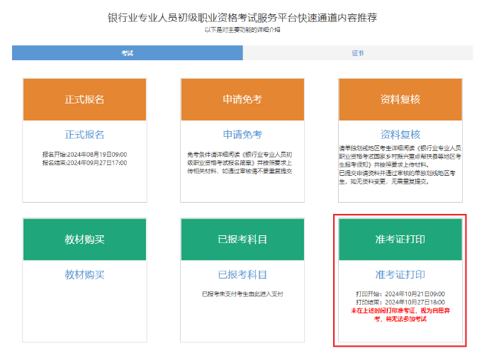 點擊進入:2024年黑龍江初級銀行從業(yè)資格準考證打印入口