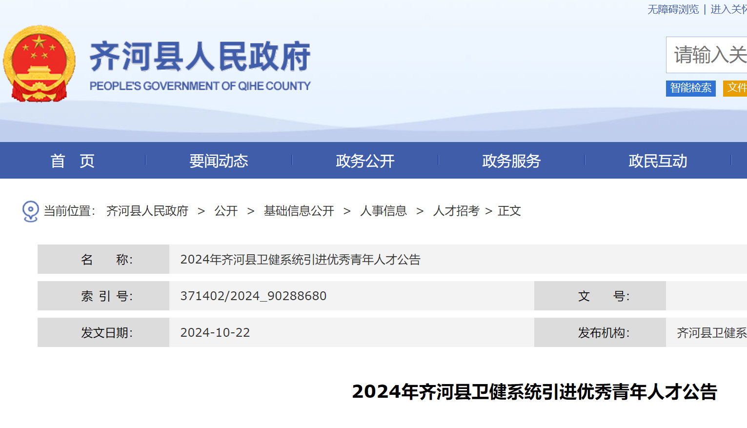2024年山東德州齊河縣衛(wèi)健系統(tǒng)引進(jìn)優(yōu)秀青年人才公告已發(fā)布,報名時間:2024年10月22日—10月31日?,F(xiàn)將招聘公告原文發(fā)布如下: