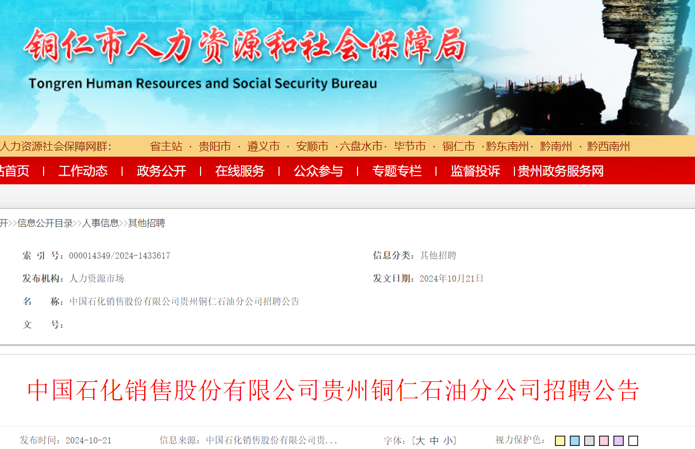2024年中國(guó)石化銷售股份有限公司貴州銅仁石油分公司招聘公告已發(fā)布,報(bào)名時(shí)間:公告之日起至10月31日前?,F(xiàn)將招聘公告原文發(fā)布如下: