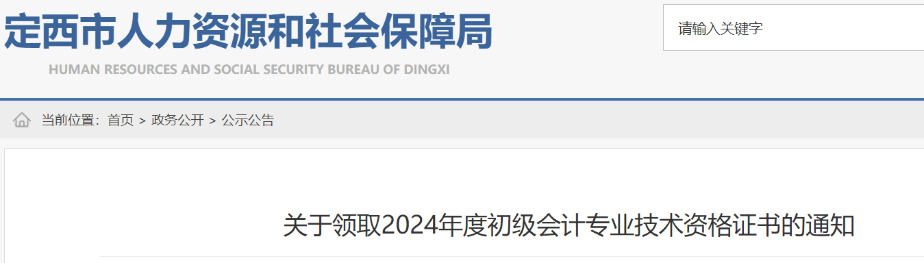 小編根據(jù)定西市人力資源和社會保障局發(fā)布”關(guān)于領(lǐng)取2024年度初級會計專業(yè)技術(shù)資格證書的通知“得知,2024年甘肅定西會計初級資格證書領(lǐng)取時間為即日起,詳情如下: