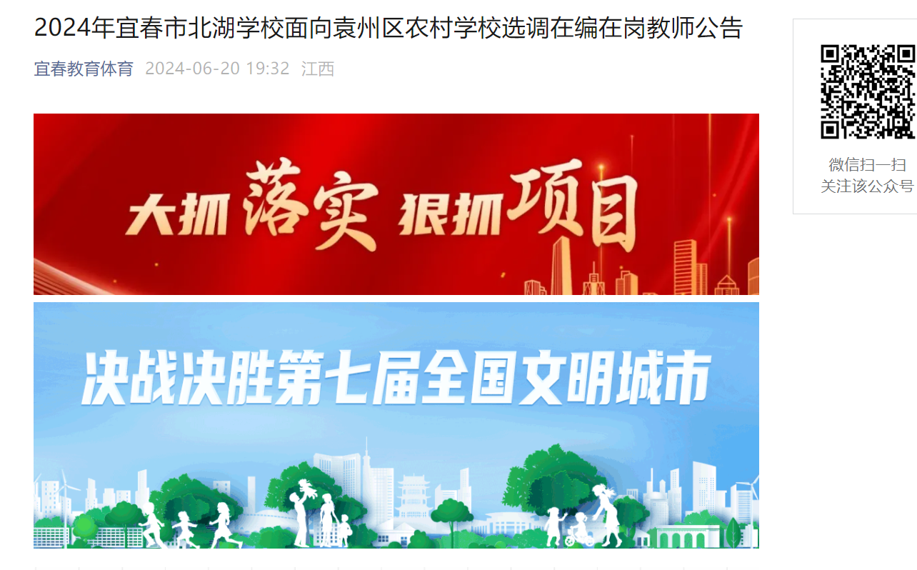 2024年江西宜春市北湖學(xué)校面向袁州區(qū)農(nóng)村學(xué)校選調(diào)在編在崗教師公告已發(fā)布,報(bào)名時(shí)間:6月20日至6月26日?,F(xiàn)將招聘公告原文發(fā)布如下: