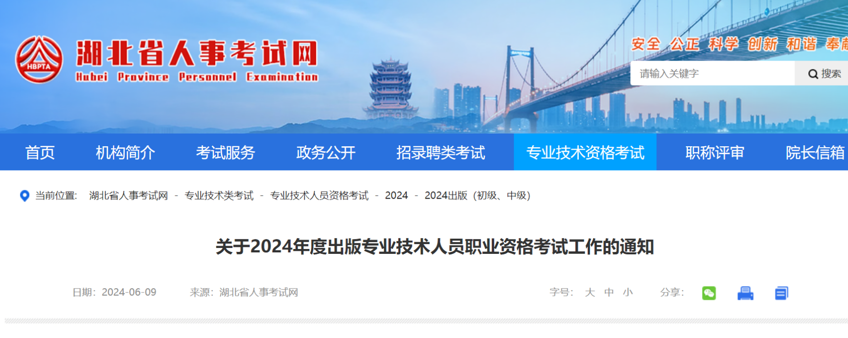 從湖北省人事考試網(wǎng)發(fā)布的《2024年湖北出版專業(yè)技術人員職業(yè)資格考試工作的通知》得知,2024湖北出版專業(yè)資格考試報名時間、條件及報名入口已公布,報名時間為6月20日-6月27日,具體詳情如下:
