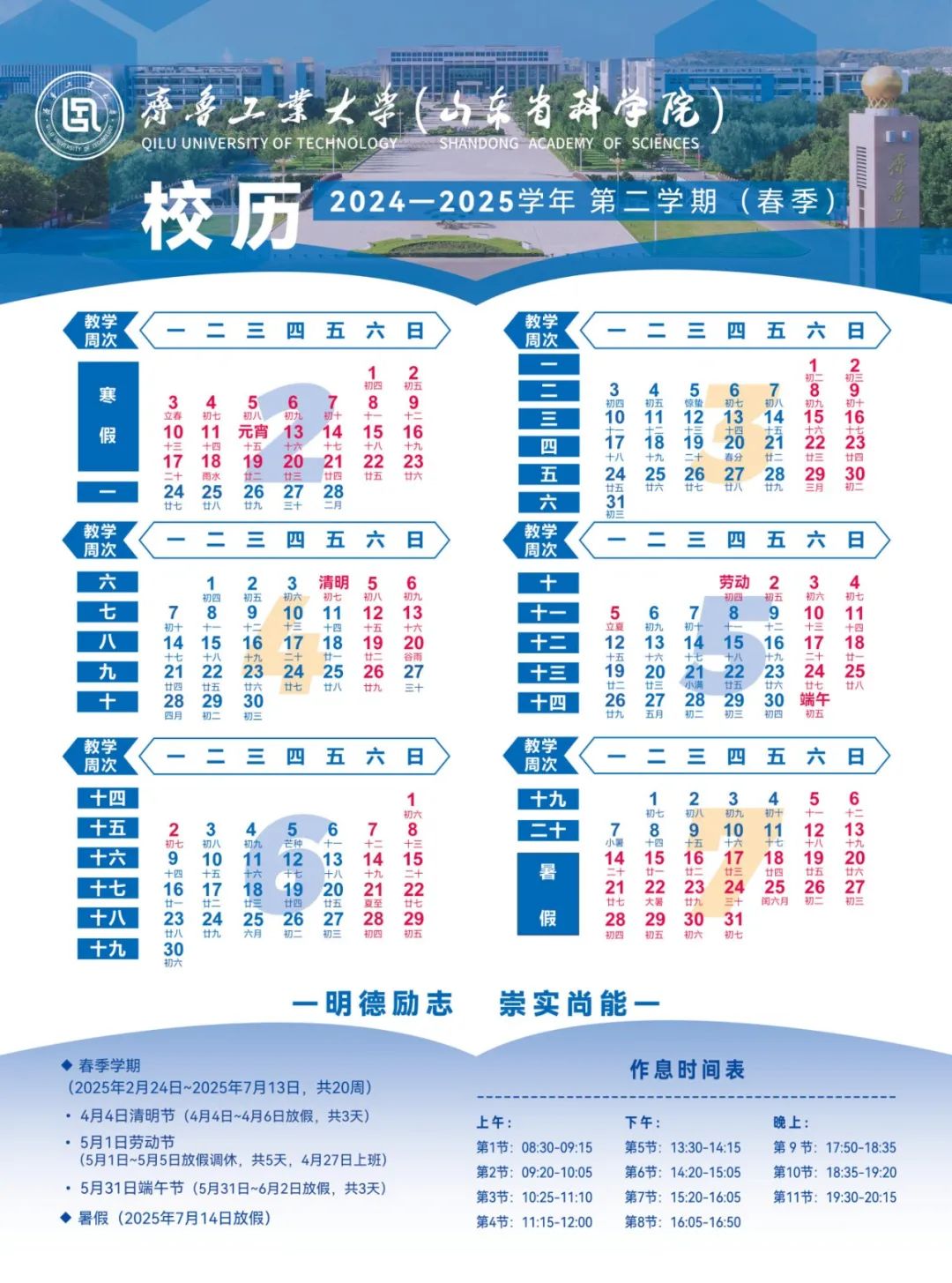 山東齊魯工業(yè)大學2024-2025學年春季學期校歷已公布,本篇文章是為您整理的《山東齊魯工業(yè)大學2024-2025學年春季學期校歷》,供大家閱讀。