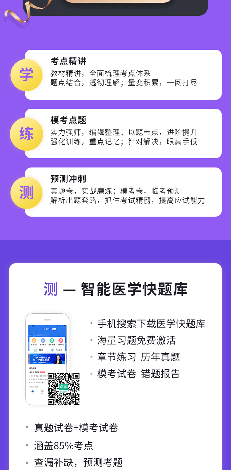 曾就職于北京三甲醫(yī)院,多年臨床工作經(jīng)驗和實習(xí)生帶教經(jīng)驗,講課擅長的方式是舉一反三,題點結(jié)合,臨床實踐代入,綜合運用表格、口訣、圖片等多種手段幫助考生形成持久的記憶,讓學(xué)員在輕松的氛圍中學(xué)習(xí)!
