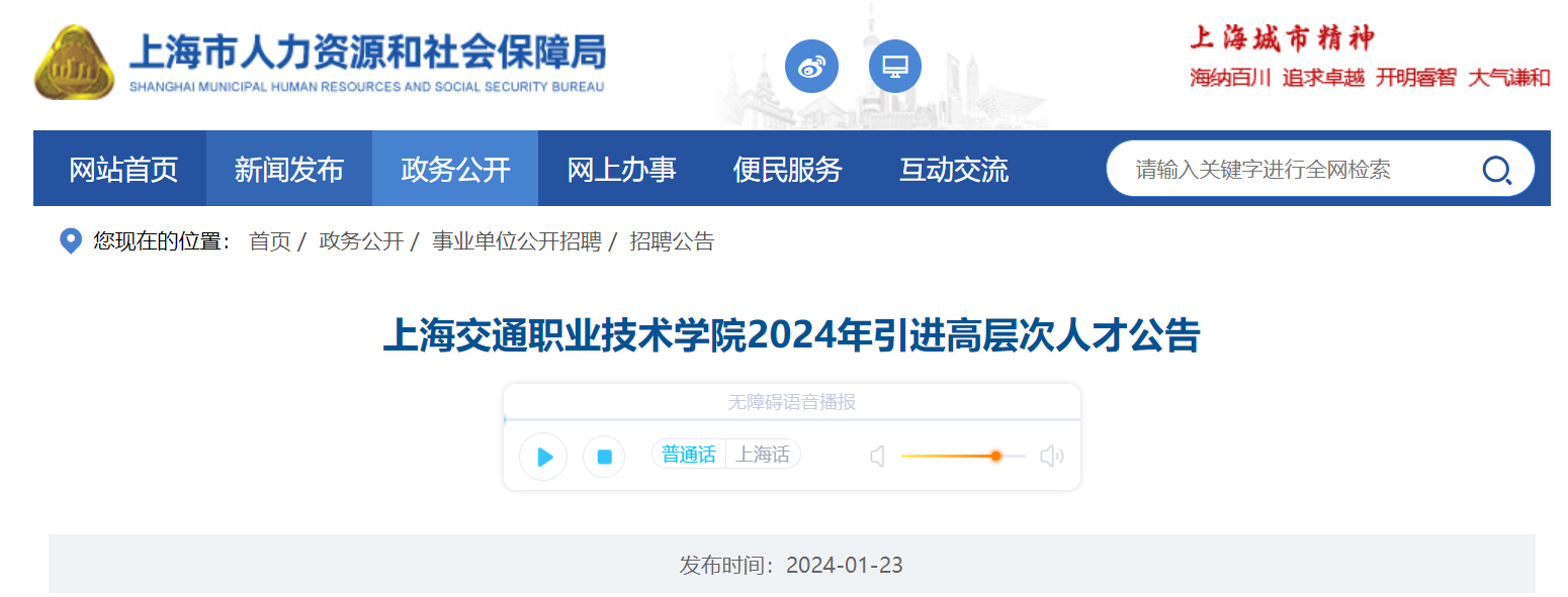 2024年上海交通職業(yè)技術(shù)學(xué)院引進(jìn)高層次人才公告已發(fā)布,本公告長期有效,即日起接受報(bào)名,高層次人才采用常年招聘方式,額滿為止?,F(xiàn)將招聘公告原文發(fā)布如下: