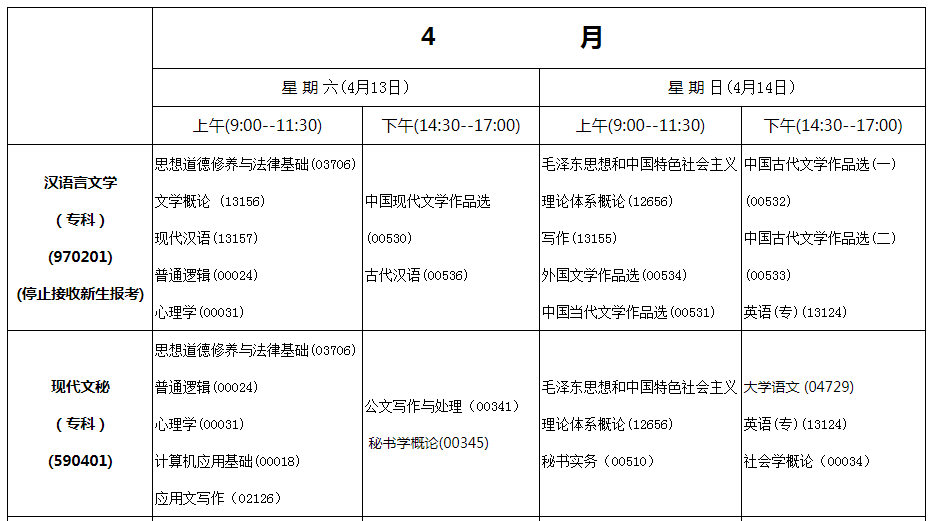 自學(xué)考試頻道根據(jù)內(nèi)蒙古招生考試信息網(wǎng)公布的《2024年度內(nèi)蒙古自治區(qū)高等教育自學(xué)考試報考簡章》了解到,2024年上半年內(nèi)蒙古錫林自考時間已公布,安排在4月13日-14日期間。具體如下: