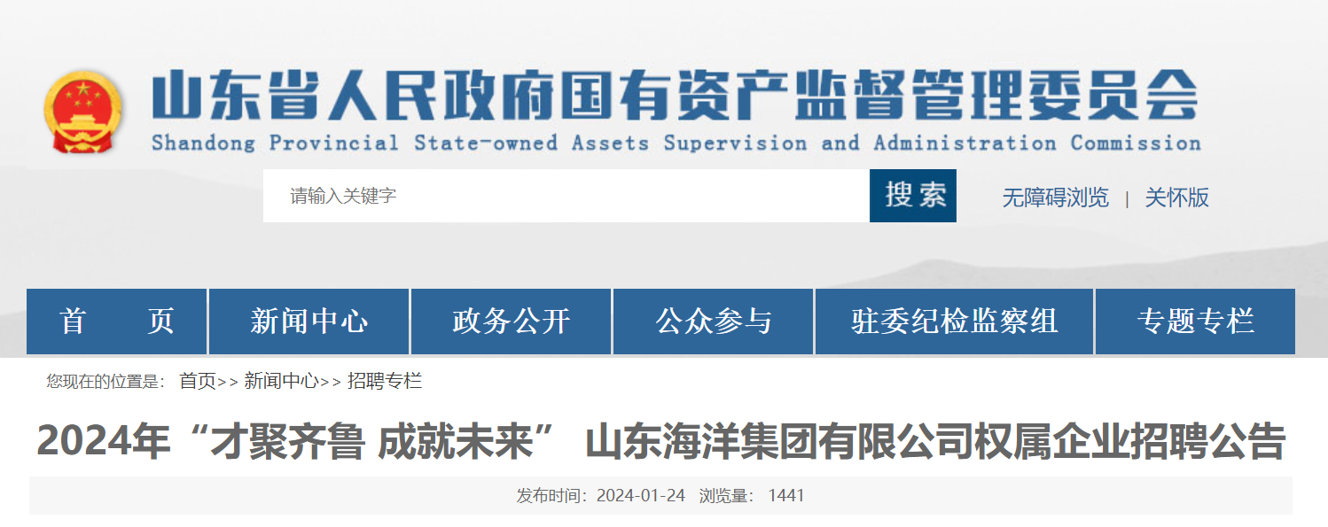 2024山東海洋集團(tuán)有限公司權(quán)屬企業(yè)招聘公告已發(fā)布,報(bào)名時(shí)間:自發(fā)布之日起至2024年1月29日17時(shí)。現(xiàn)將招聘公告原文發(fā)布如下: