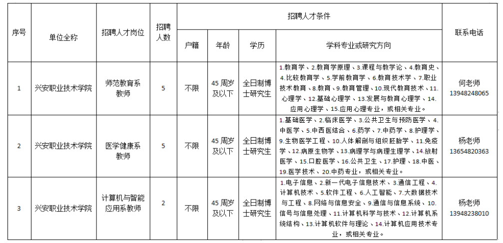 興安職業(yè)技術學院坐落在大興安嶺南麓科爾沁右翼前旗,于2001年整合區(qū)域內7所大中專院校、經內蒙古自治區(qū)人民政府批準成立,是革命老區(qū)興安盟一所全日制高校,是全國教育改革創(chuàng)新示范院校、自治區(qū)級示范校,也是國家高技能人才培訓基地和全區(qū)鄉(xiāng)村振興培訓基地。根據工作需要,現就2024年引進博士人才計劃公告如下。一、引進崗位及聯系方式