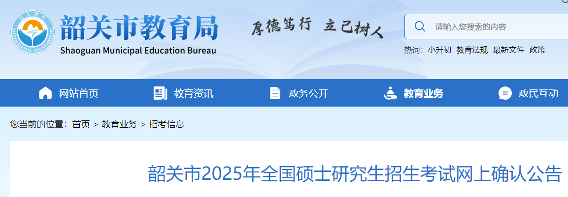 從韶關(guān)市教育局了解到,廣東韶關(guān)2025年碩士研究生招生考試網(wǎng)上確認(rèn)公告已公布,具體如下: