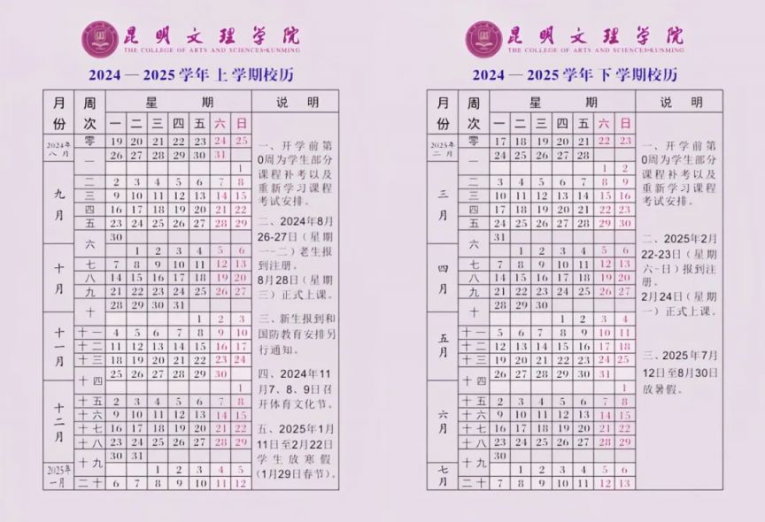 云南昆明文理學(xué)院2024-2025學(xué)年校歷已公布,2025年1月11日放寒假。為您整理的《云南昆明文理學(xué)院2024-2025學(xué)年校歷 1月11日放寒假》,希望對大家有所幫助!
