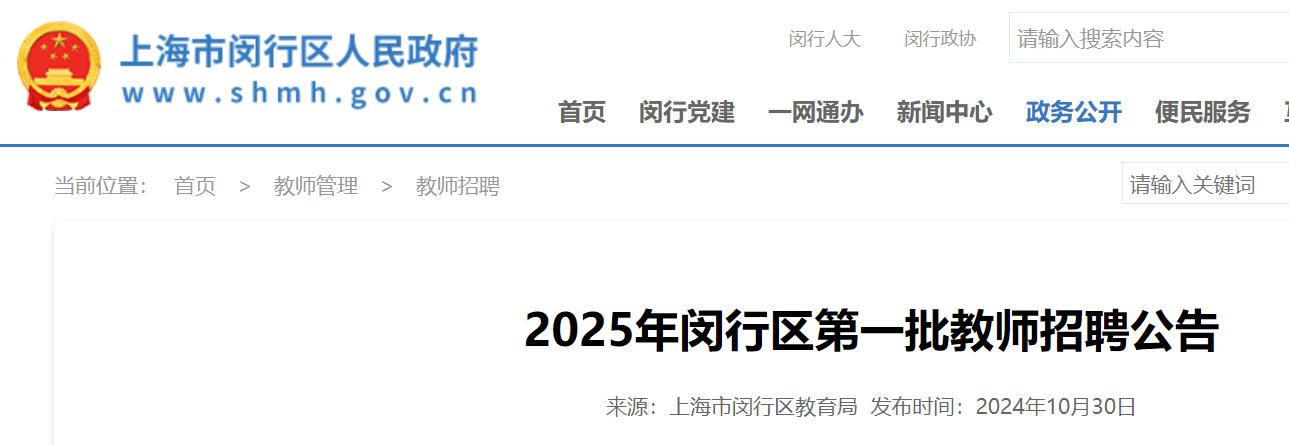 2024年10月30日,通過閔行區(qū)教育局和“閔行教育”微信公眾號發(fā)布招聘公告和崗位需求(見附件1)等。
