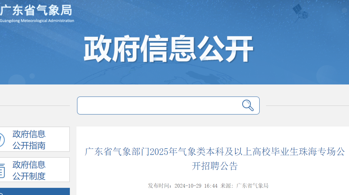 小編根據(jù)廣東省氣象局發(fā)布“廣東省氣象部門2025年氣象類本科及以上高校畢業(yè)生珠海專場公開招聘公告”得知,2025廣東省氣象部門氣象類本科及以上高校畢業(yè)生珠海專場招聘17人,報(bào)名時(shí)間為2024年11月15日。