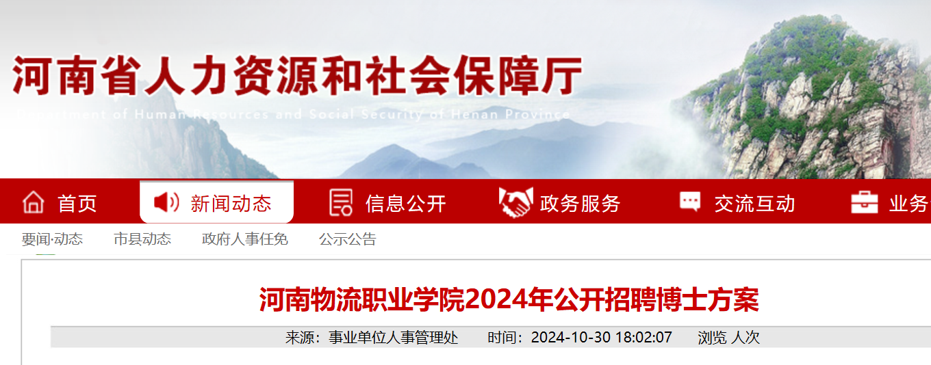 本次招聘方案經(jīng)河南省教育廳、河南省人力資源和社會保障廳審核備案后,分別在河南省人力資源和社會保障廳(https://hrss.henan.gov.cn/)、河南物流職業(yè)學(xué)院(https://www.hnwlxy.edu.cn/)發(fā)布,發(fā)布時(shí)間截止至2024年12月31日。