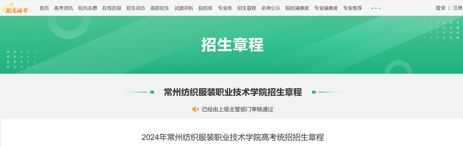 從陽(yáng)光高考網(wǎng)獲悉,《2024年常州紡織服裝職業(yè)技術(shù)學(xué)院高考統(tǒng)招招生章程》已發(fā)布,請(qǐng)準(zhǔn)備報(bào)考本校的考生認(rèn)真閱讀招生章程,祝愿所有考生考入自己理想的大學(xué),選擇適合自己的專業(yè)。