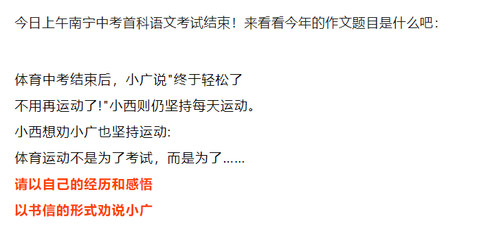 2024年廣西玉林中考作文題目已公布,請以自己的經(jīng)歷和感悟以書信的形式勸說小廣,小編整理內(nèi)容如下供考生參考,希望對考生有幫助!