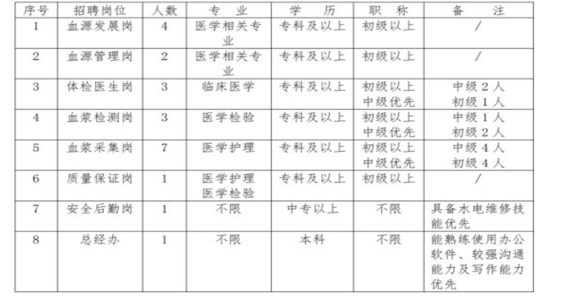中國生物墨江上生單采血漿站于2022年3月23日在墨江哈尼族自治縣完成工商登記注冊,注冊資金4000萬元,是中國醫(yī)藥集團有限公司(簡稱“國藥集團”)旗下國藥集團上海血液制品有限公司的全資子公司,獨立法人單位,屬于國有企業(yè)性質(zhì)(央企),主要業(yè)務是健康人原料血漿的采集與供應。為推進漿站人才隊伍建設,保障業(yè)務工作順利開展,現(xiàn)公開招聘衛(wèi)生專業(yè)技術(shù)人員?,F(xiàn)將有關(guān)招聘事宜公告如下: