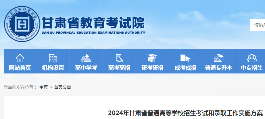 高考頻道從甘肅省教育考試院了解到,2024年甘肅普通高等學(xué)校招生考試和錄取工作實(shí)施方案已公布,具體如下: