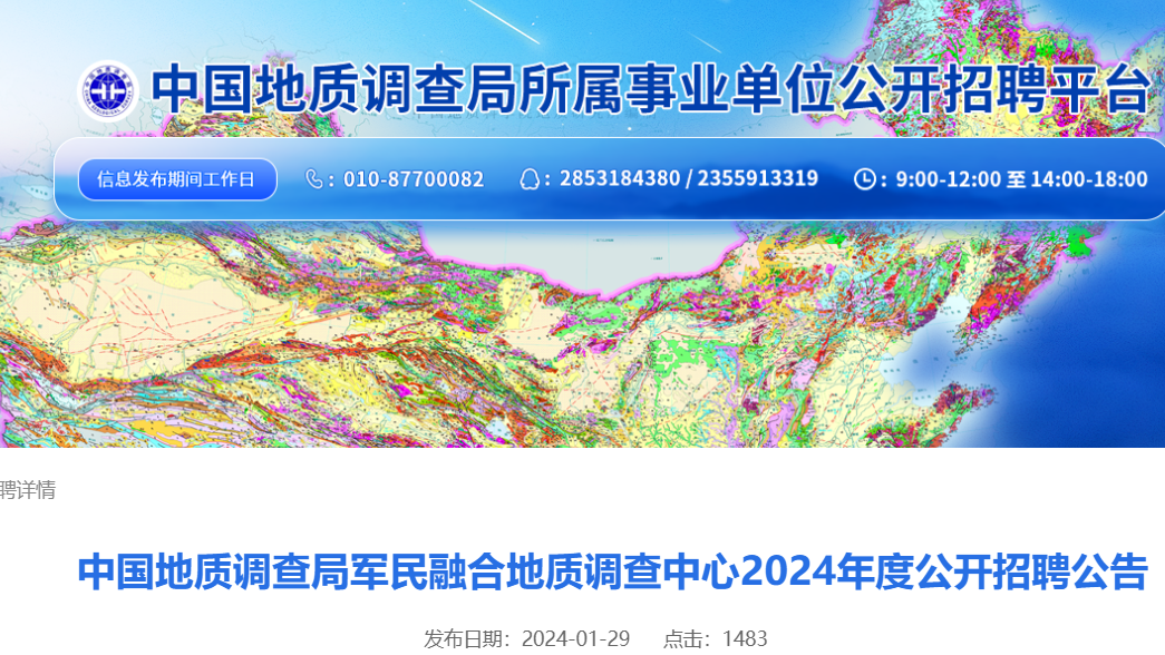 根據(jù)事業(yè)發(fā)展需要,中國地質(zhì)調(diào)查局軍民融合地質(zhì)調(diào)查中心(以下簡稱“軍民融合中心”)2024年度公開招聘工作人員19名,其中應屆畢業(yè)生4名,社會在職人員15名。