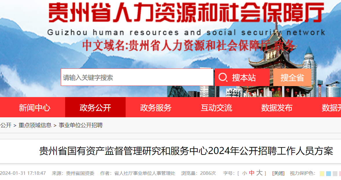 在貴州人力資源社會(huì)保障網(wǎng)、貴州省國(guó)資委發(fā)布公開(kāi)招聘公告。公告時(shí)間從2024年1月31日到2024年2月25日。