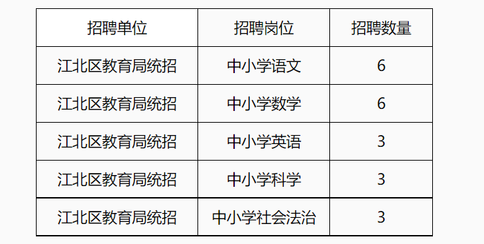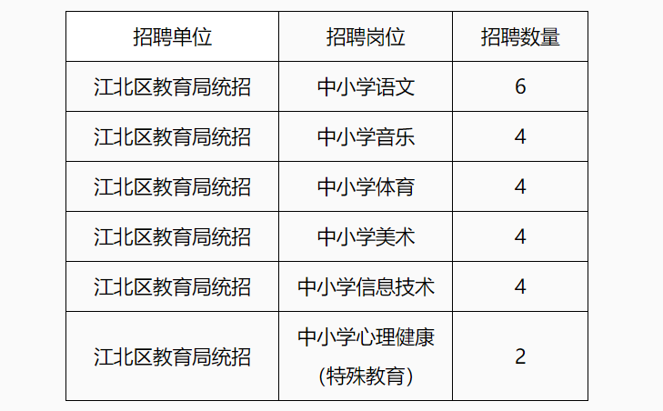 3、資格復審??荚嚂r請攜帶初審合格證明、《江北區(qū)教育局公開招聘非編特聘制教師報名登記表》原件及報名登記表中要求提供的證書原件和復印件,進行資格復審。